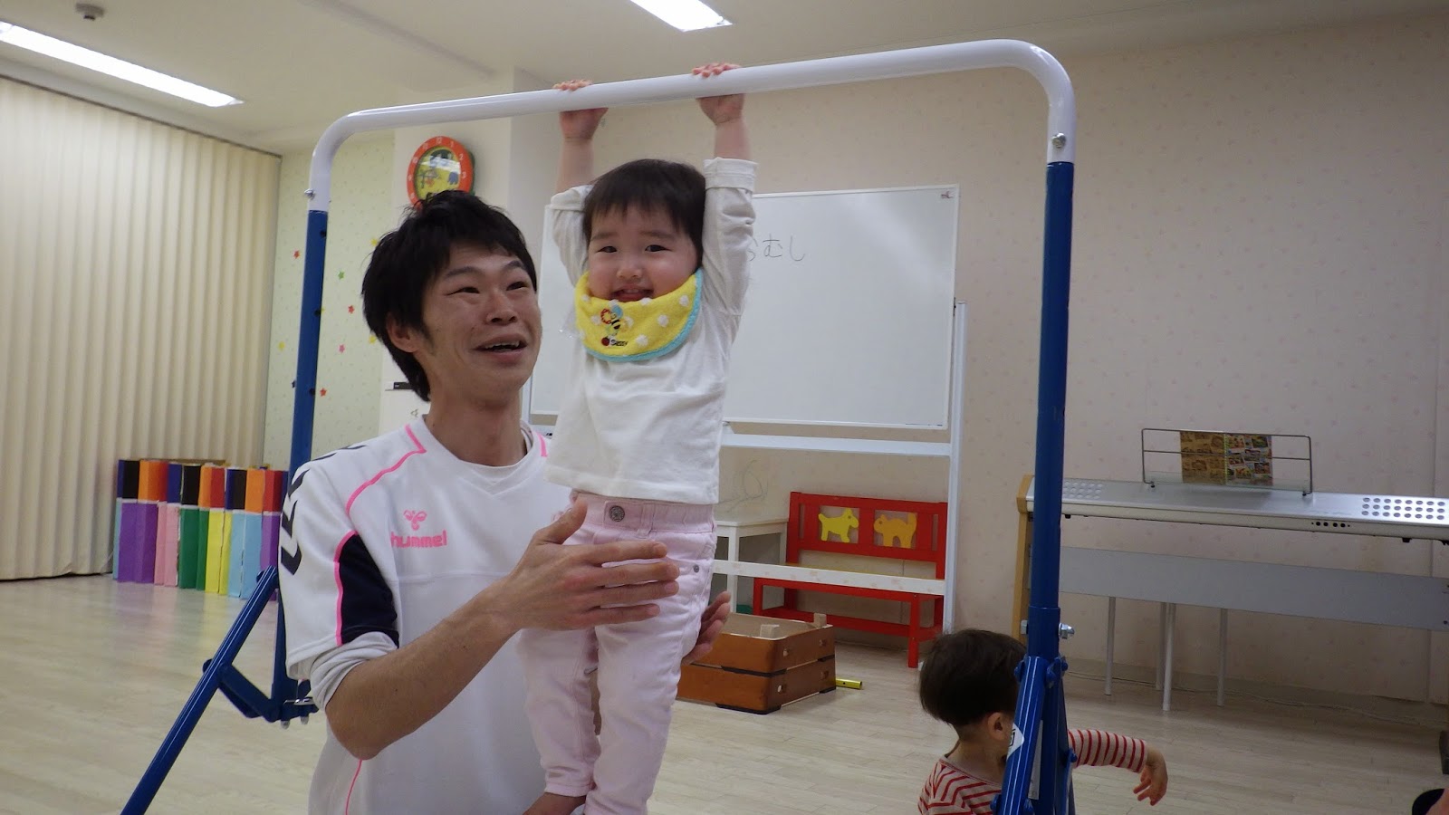 午前のキッズ体育で行った鉄棒を発展させて、行いました。