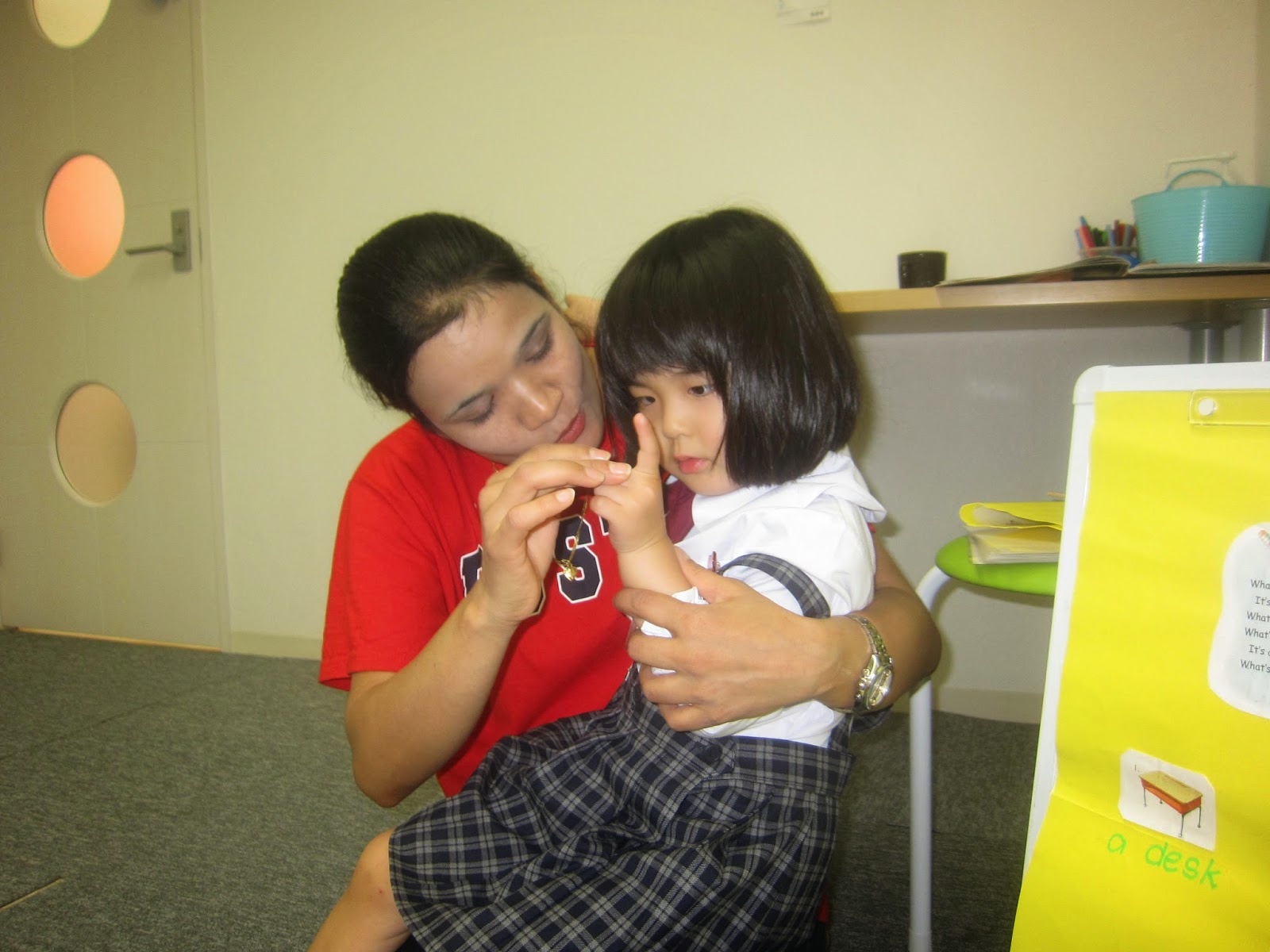 We also practice how to introduce our self. Like my name is.....,I am two years old, I am from Japan and i am happy today....